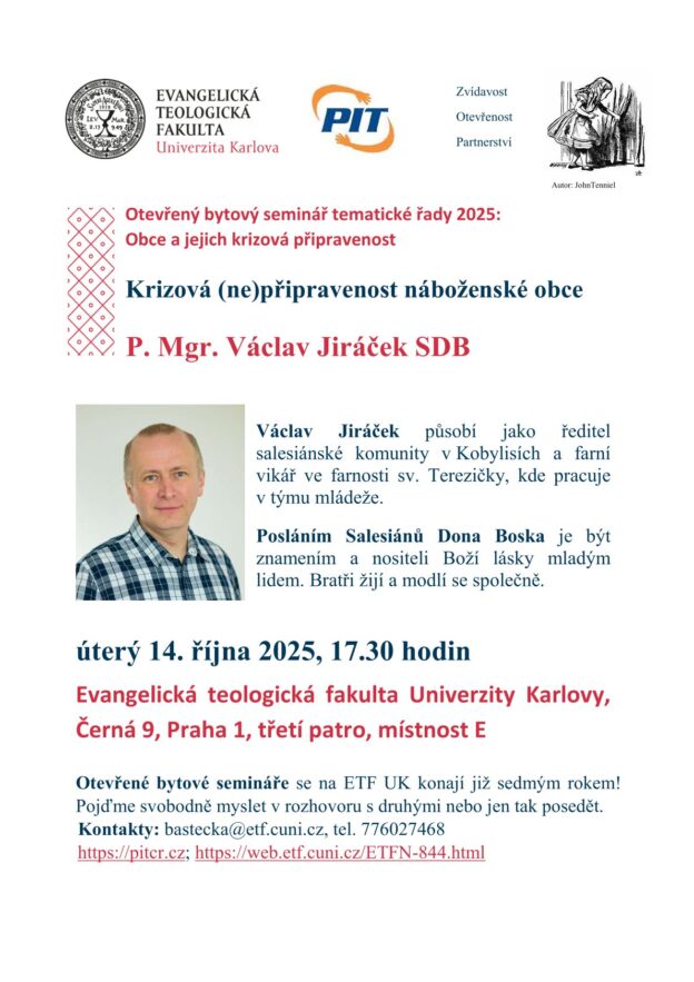 Konference je otevřena všem zájemcům a účast na ní je bezplatná. Proběhne ve Velké posluchárně Evangelické teologické fakulty UK v Praze 1, Černá 9, od 10 do 15 hodin.